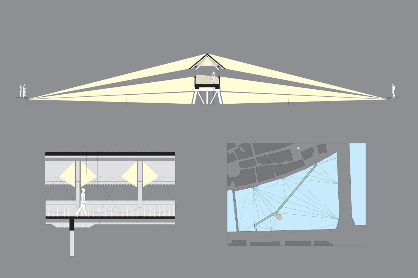 The creative team noticed that crossing the bridge is a special experience. It connects to the history of the bridge and the city of Lucerne. Crossing the bridge is an act that should be seen from outside and experienced while walking over the bridge. With The Particle Plan, the Chapel bridge becomes a public stage. A stroll over the bridge generates a unique pattern of light on the bridge, illuminating the distinct elements that constitute the bridge, as a fresh renewable canvas. In this manner we also highlight how the bridge, built in 1333, is being kept alive as a concept whilst its hand-crafted parts are continuously being rejuvenated.